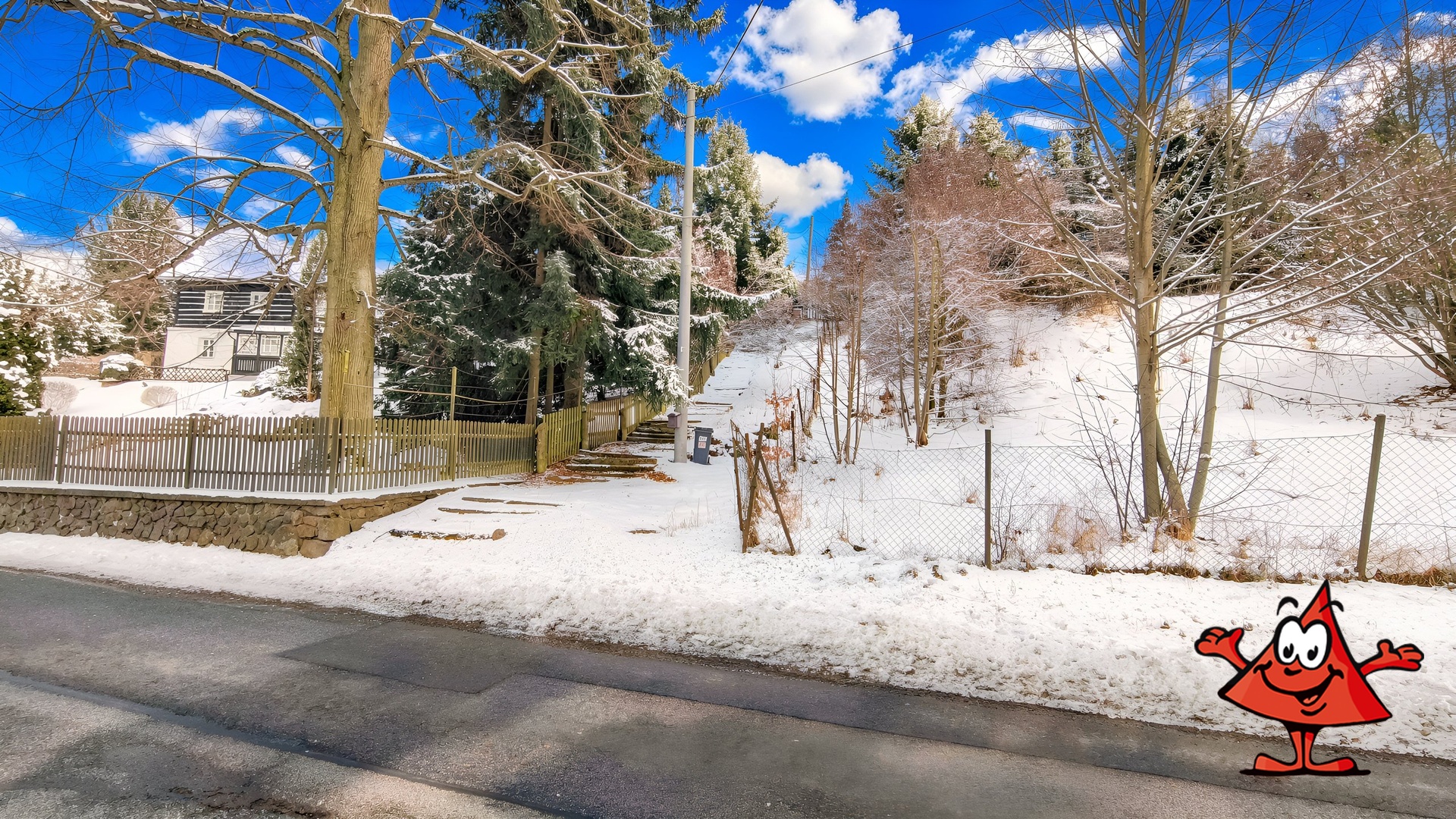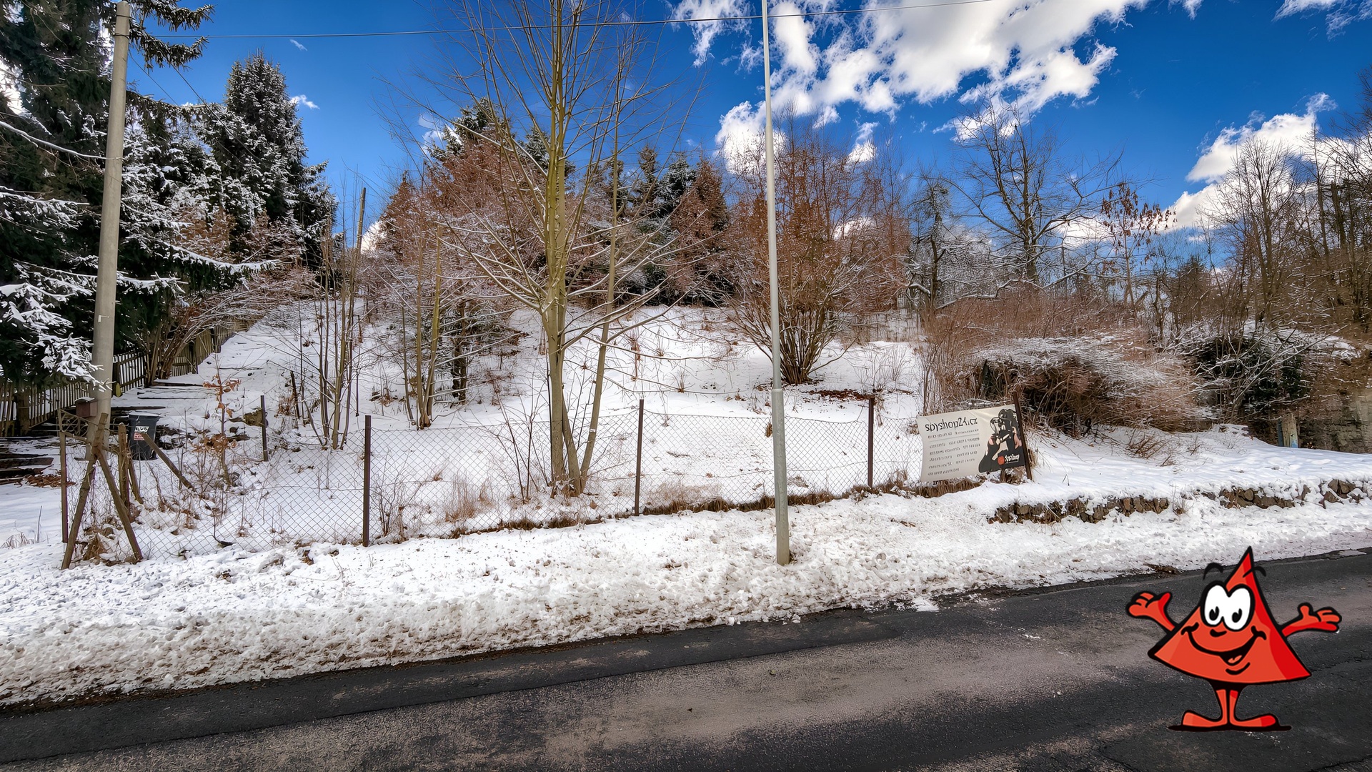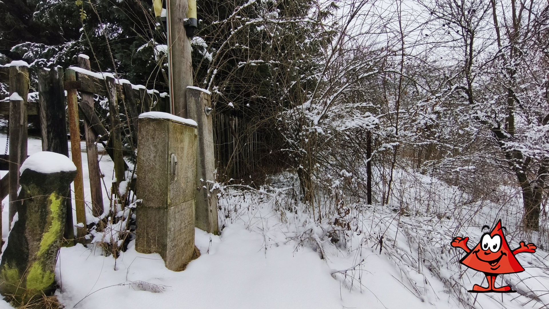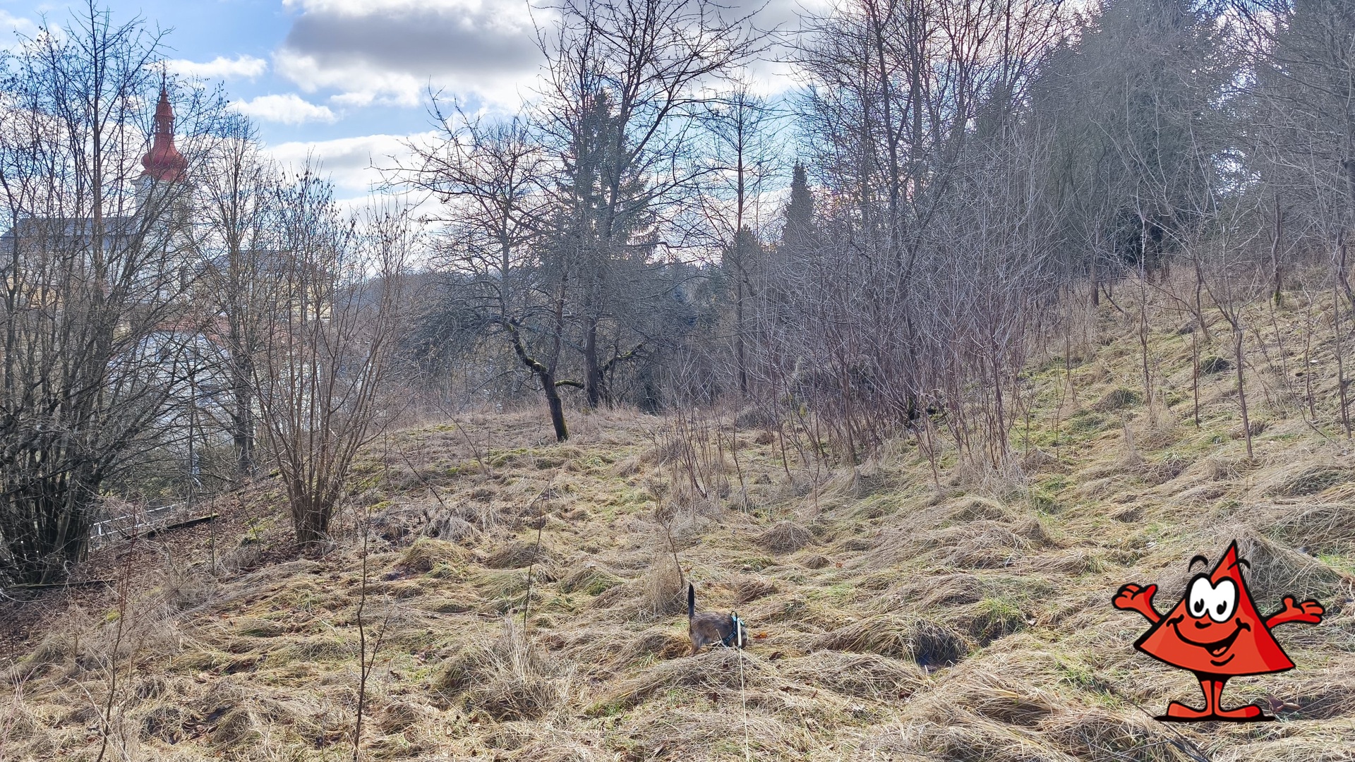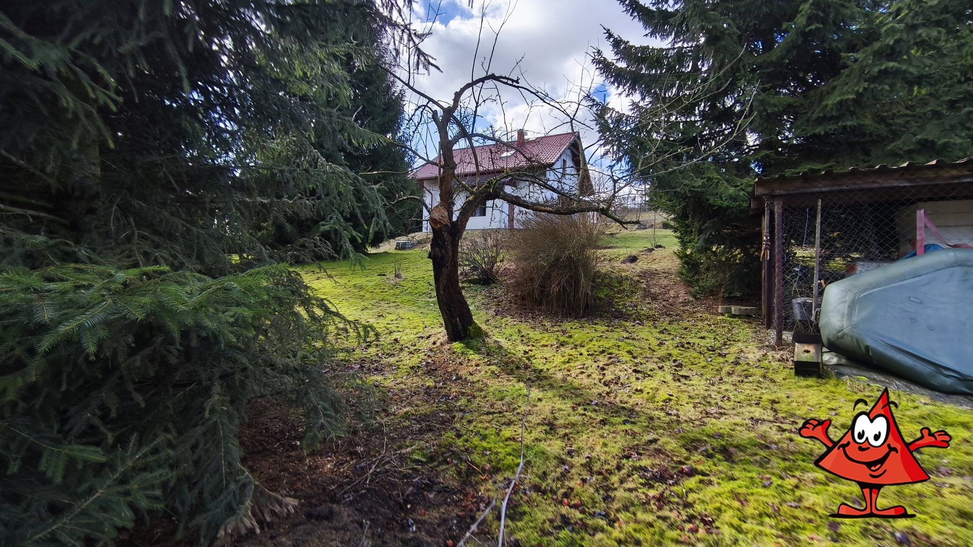 Parcela je svažitá (východní svah), s náletovými dřevinami a vzrostlými ovocnými stromy. Nabízí dostatek soukromí – sousedí pouze s jedním rodinným domem, budoucí domov důchodců bude vzdálen cca 60–70 m. U pozemku je parkoviště a kontejnery na tříděný odpad.
